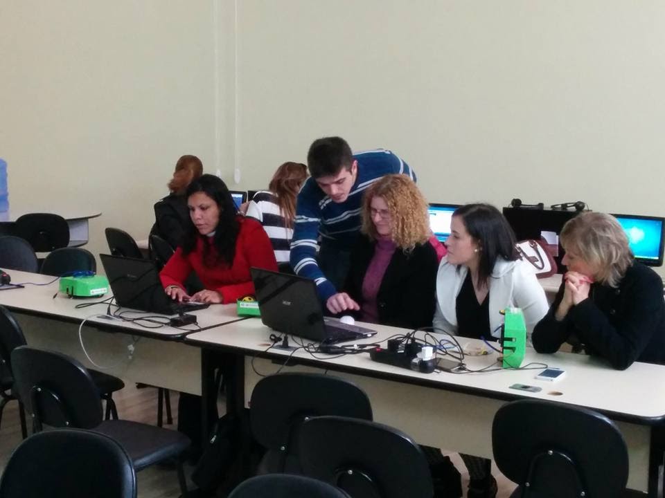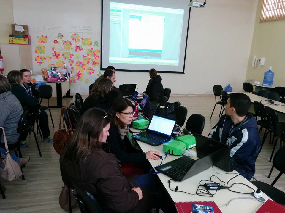 No dia 11 de setembro, os professores da rede municipal que atuam nos laboratórios de informática educacional receberam capacitação em robótica, no Núcleo de Apoio Tecnológico de Farroupilha (N@tfar). Dois profissionais de cada escola participaram da oficina Robô+ Edu, oferecida pela Universidade Federal do Rio Grande do Sul (UFRGS).
